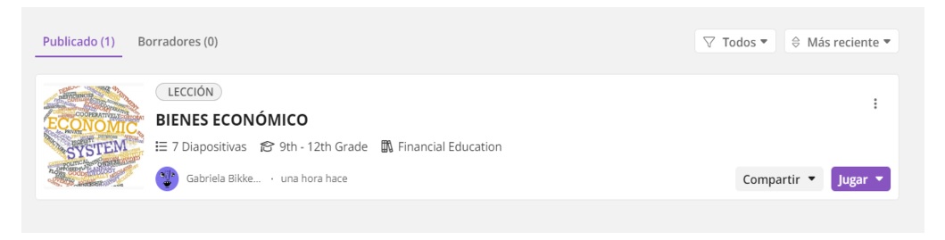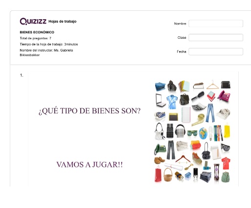 Se les compartirá a los estudiantes un enlace, con un juego Quizz, donde se le presentarán imágenes de las cuales deberán indicar de qué tipo de bienes se trata, tendrán 10 segundos para resolver cada instancia del juego.